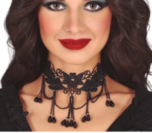 Náhrdelník – čierny s kvietkami