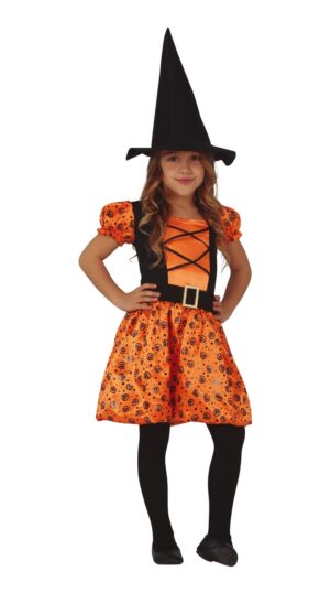 Dievčenský kostým – Tekvicová čarodejnica Veľkosť – deti: M: 115-123 cm