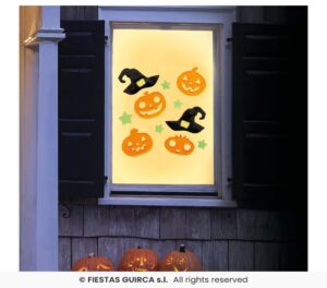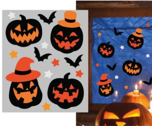 Gélová dekorácia na okno – Tekvice a klobúky 20 x 25 cm