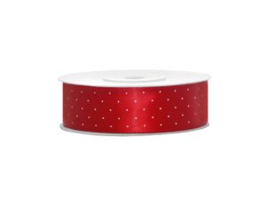 Bodkovaná saténová stuha červená 25mm/25m