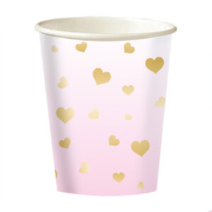 Papierové poháre – Ružové so zlatými srdiečkami 250 ml 8 ks