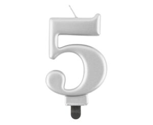 Narodeninová sviečka 5 metalická strieborná
