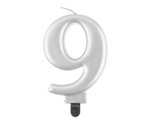 Narodeninová sviečka 9 metalická strieborná
