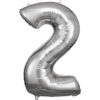 Balónik fóliový narodeninové číslo 2 strieborný 86cm
