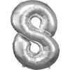 Balónik fóliový narodeninové číslo 8 strieborný 86 cm