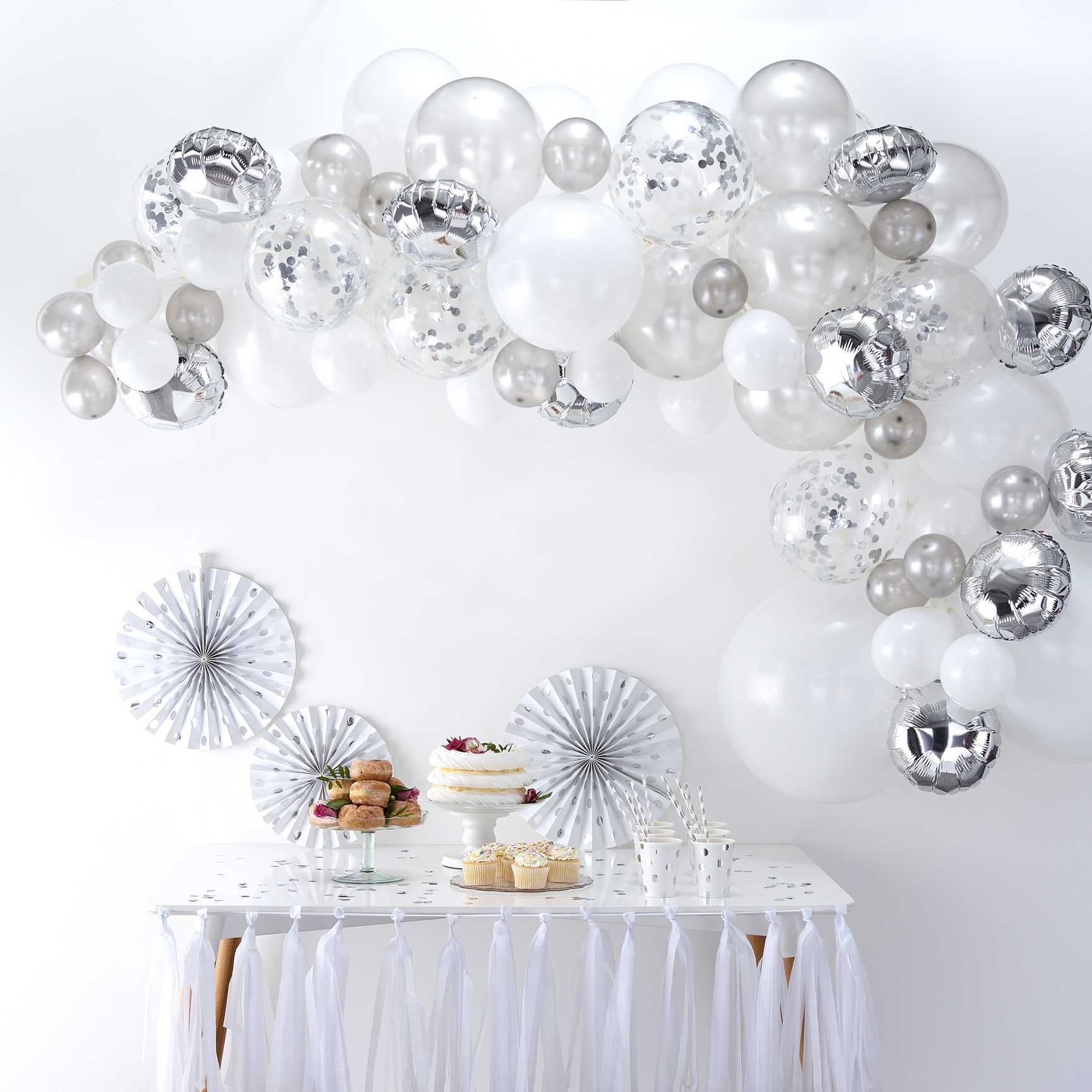 Balónová girlanda – Strieborná s konfetami