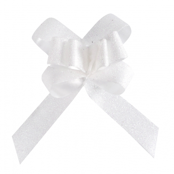Dekoračné mašle – glitrované 10 ks Farba: Biela