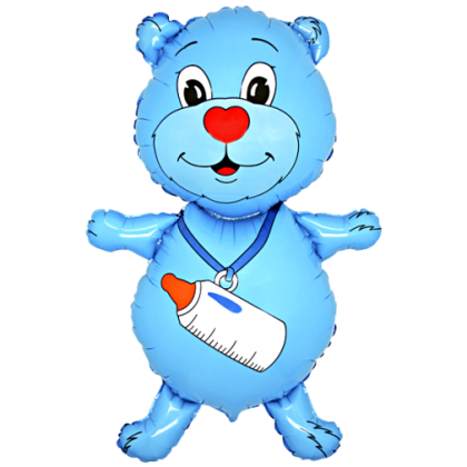 Fóliový balón – Macko s fľašou (modrý)