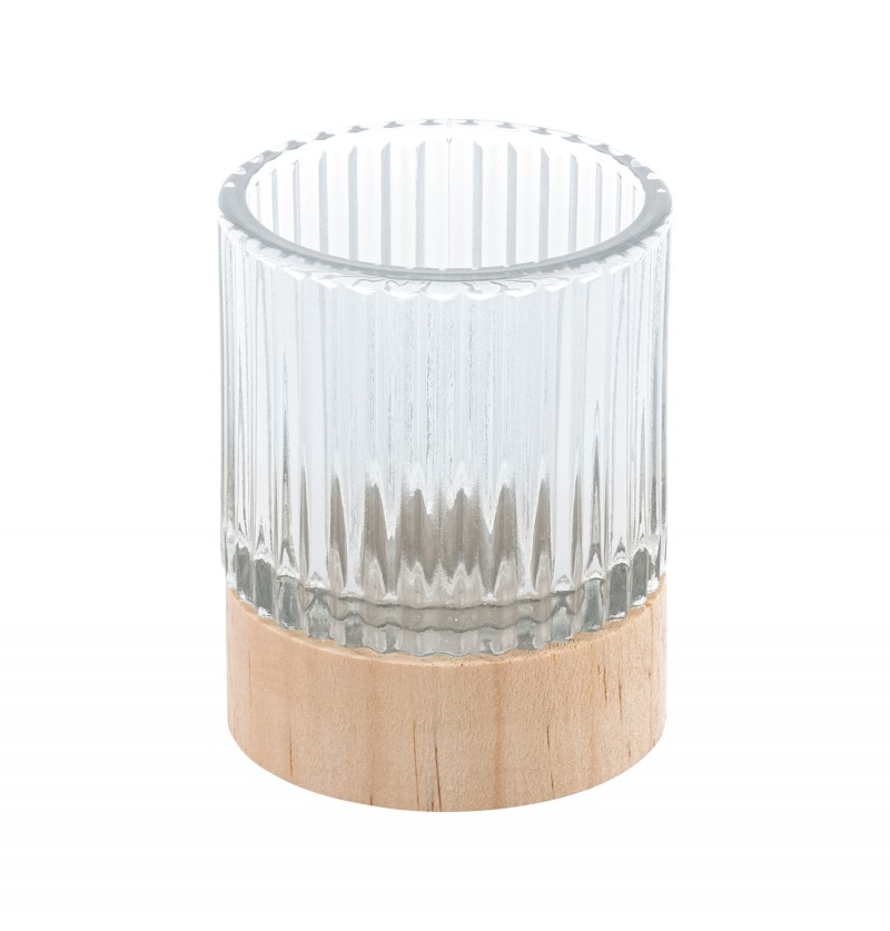 Sklenený svietnik s dreveným podstavcom 7 x 8,6 cm