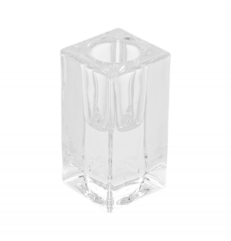 Svietnik na kónickú sviečku kváder – Transparent 4 x 4 x 8 cm